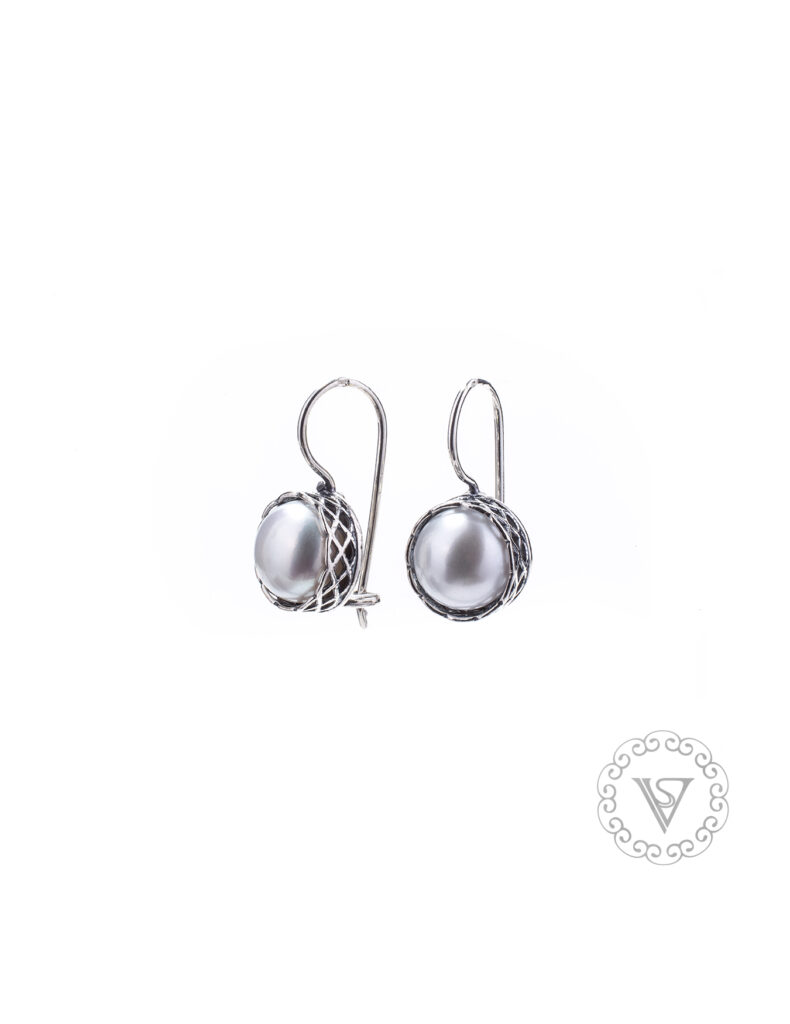 Klasické perlové náušnice zdobené jednou kulatou perlou. Perla je vsazena do krásně jemně zdobeného rámečku.