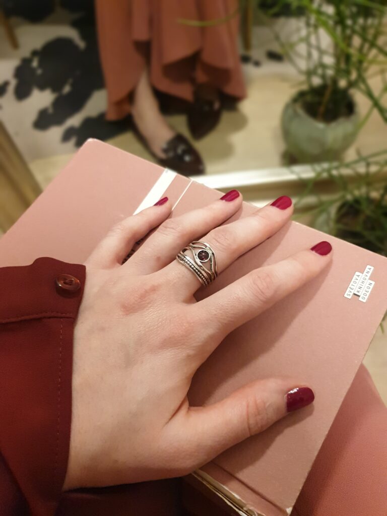 Do detailu propracovaný stříbrný prsten tvořený proplétáním a zdobený jedním kulatým kamínkem. Pro příjemnější nošení je prsten zúžený do dlaně.