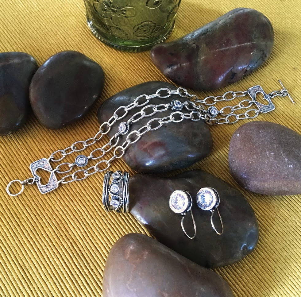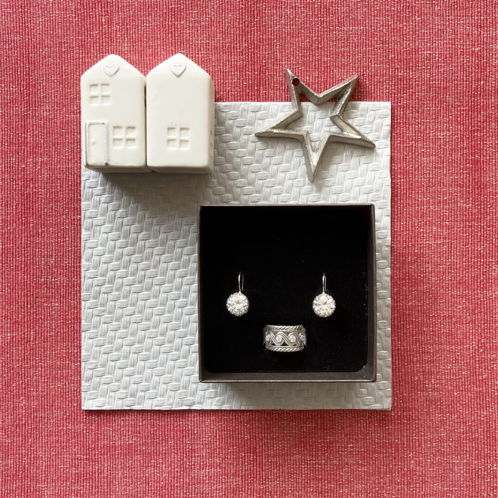 Širší stříbrný prsten tvořený třemi širšími kroužky, které jsou v dlaňové části prstenu pevně spojeny. Navíc jsou kroužky prstenu ještě tvořeny dalšími drobnými kroužky. V přední části je prsten zdobený třemi kulatými kamínky.